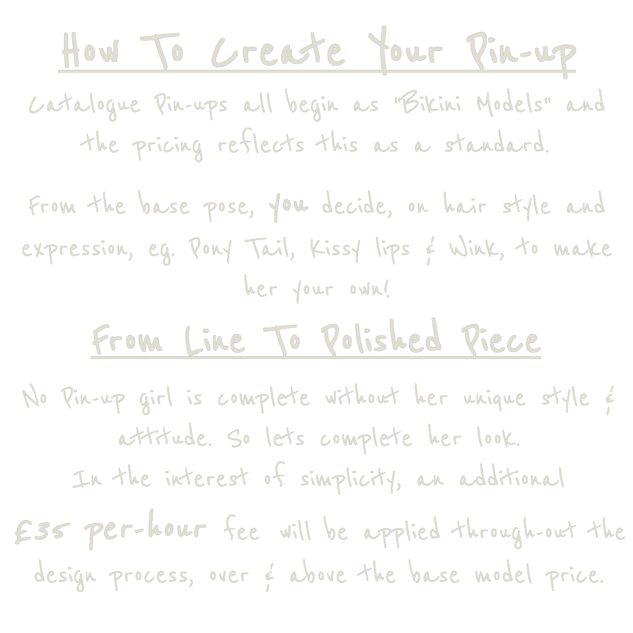 For unique, custom posed pieces please use the contact form to discuss terms and fees.